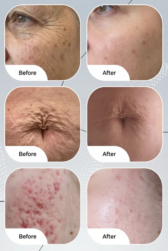 El resultado es una piel más tersa, uniforme y rejuvenecida, con una mejora visible de arrugas, flacidez, poros dilatados y cicatrices.